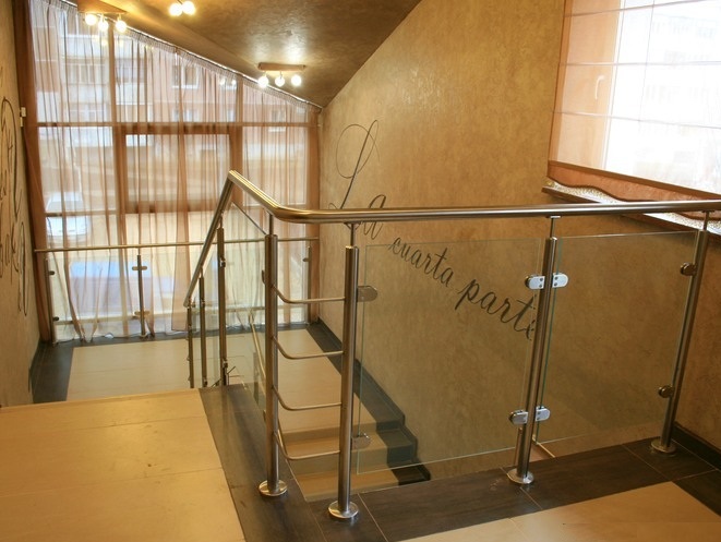 Данный вид ограждений из нержавейки не ограничивается исключительно лишь торговыми центрами и бизнес центрами. Многие наши клиенты предпочитают устанавливать ограждения у себя дома, это и загородные дома, в которых предусмотрены лестницы на другие этажи, которые в свою очередь могут быть винтовыми, и квартиры в городе. Ограждения из нержавеющей стали это неотъемлемый атрибут спортцентров, стадионов и бассейнов, где огромное количество влаги просто съедает стальные ограждения, даже не смотря на хорошую обработку поверхности и ее окраску.