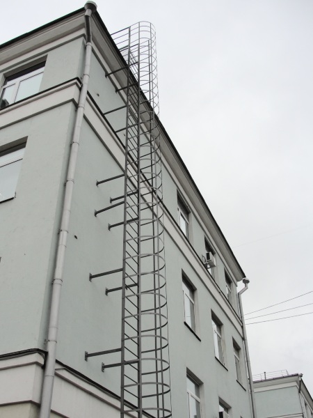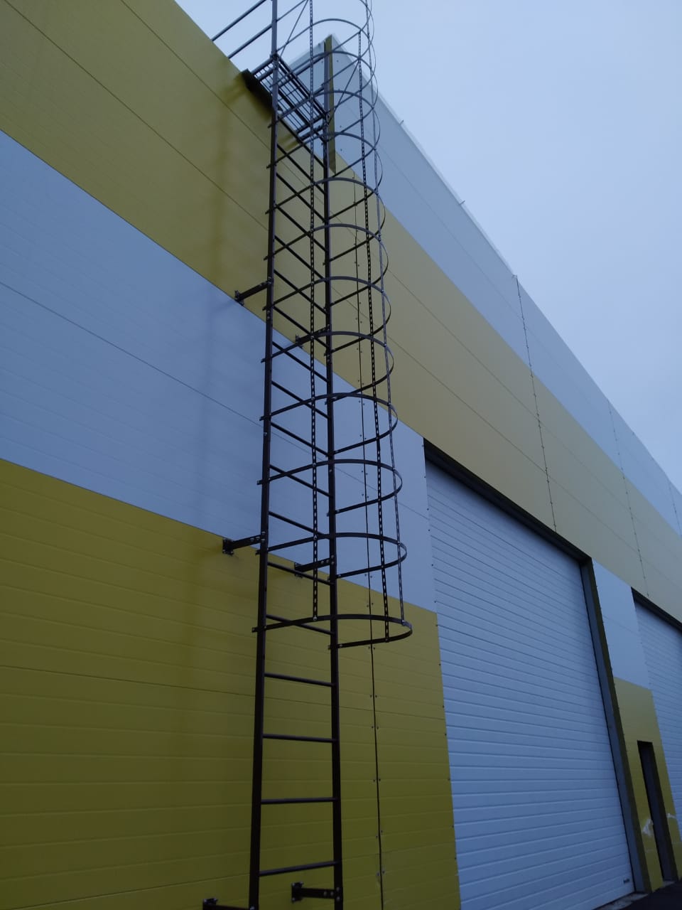 Вертикальные пожарные лестницы такого типа изготавливаются c защитным ограждением от 7м, согласно требований ГОСТ.